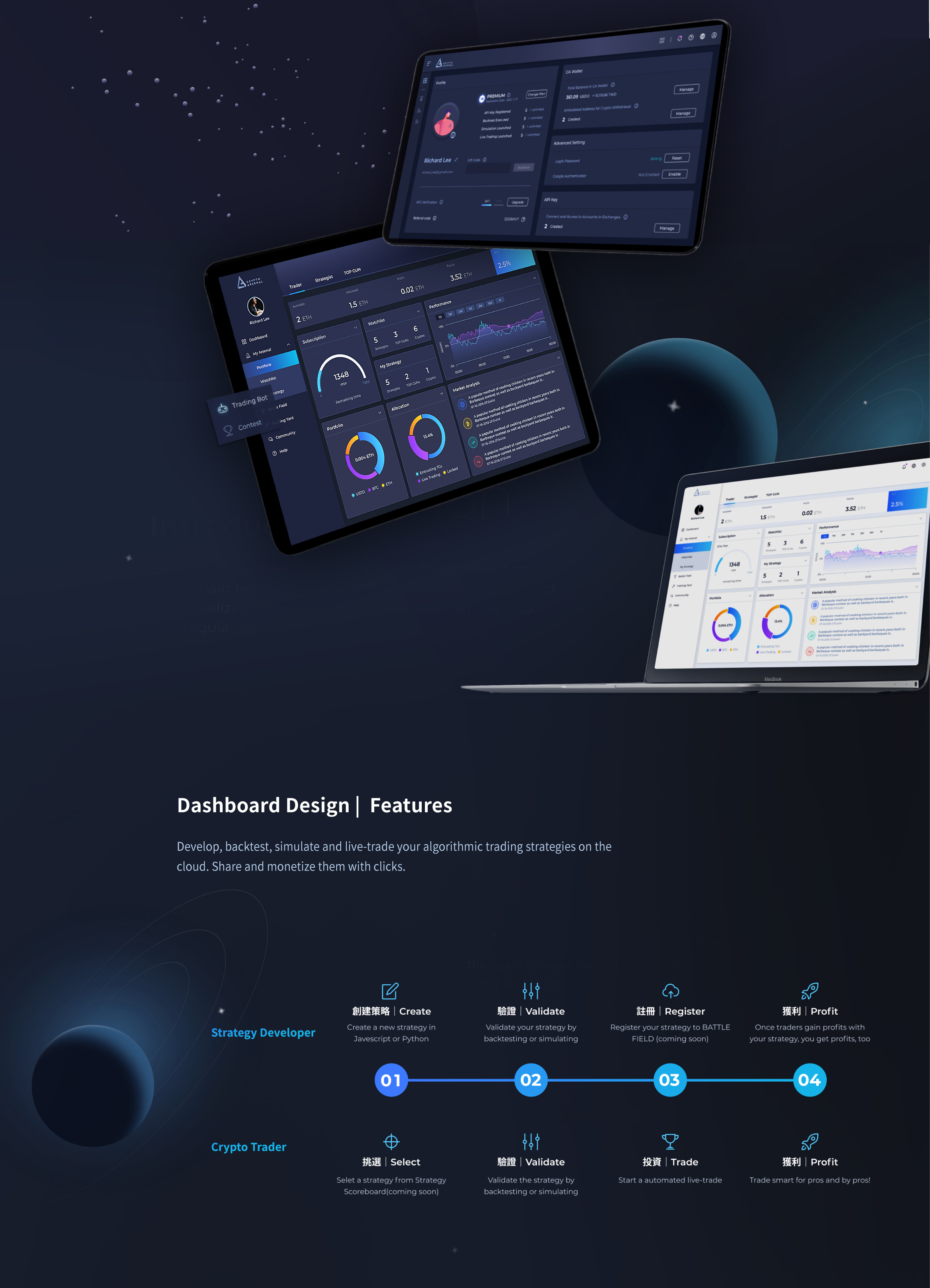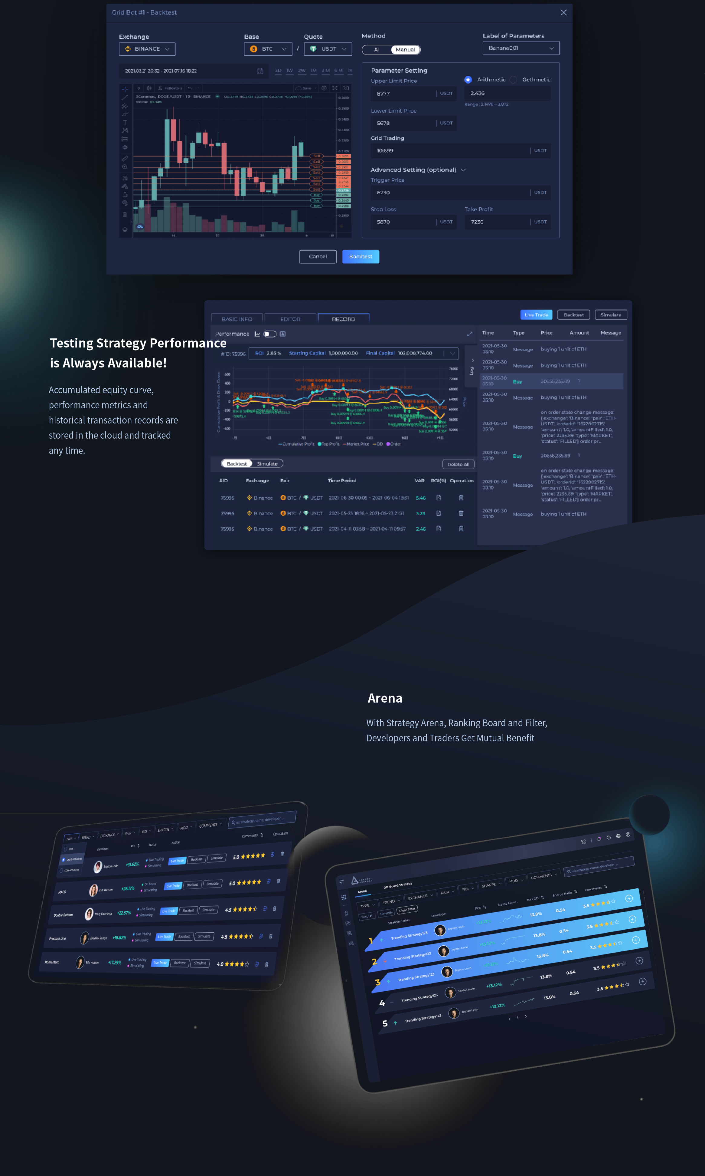 Cloud-based automated crypto-trading platform for quantitive strategy developers and daily traders.